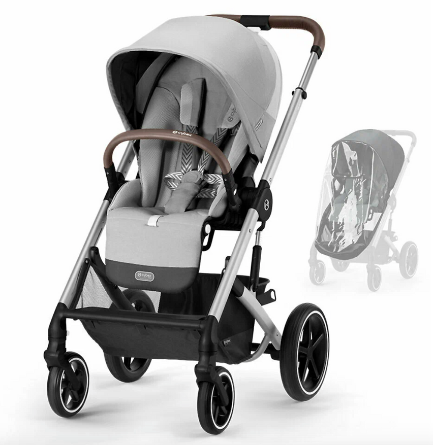 Поворотные передние колёса с углом вращения 360° и прорезиненные EVA-колёса с амортизацией делают движение плавным и управление лёгким. Надёжная защита предусмотрена во всём: пятиточечные ремни безопасности, удобный бампер и большой козырёк с защитой от солнца (UPF 50+). Для жаркой погоды предусмотрена вентиляционная сетка, а для холодного времени года — утеплённая накидка на ножки и дождевик, которые входят в комплект.