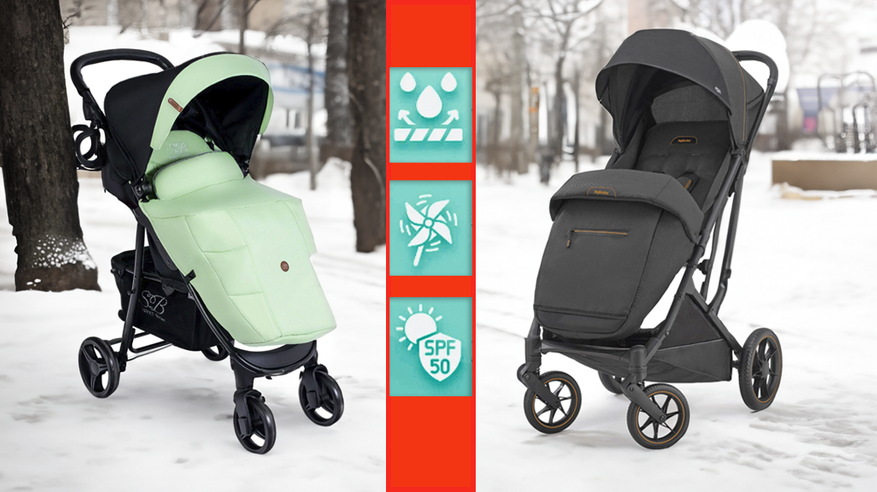 — Большой козырёк защищает от солнца, снега и дождя, вентиляционное окошко даёт прохладу в жаркую погоду, а мягкие амортизаторы обеспечивают плавный ход. Независимо от дороги и погоды, ребёнок будет чувствовать себя уютно.