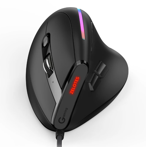 Zelotes T-50 ориентирована на высокие игровые показатели, предлагая сочетание вертикальной формы и продвинутой начинки. Манипулятор оснащен сенсором с разрешением до 12 800 DPI и частотой опроса 1000 Гц, что критично для точности в динамичных сценах. Проводное подключение гарантирует отсутствие задержек и стабильную работу без подзарядки в разгар сессии.