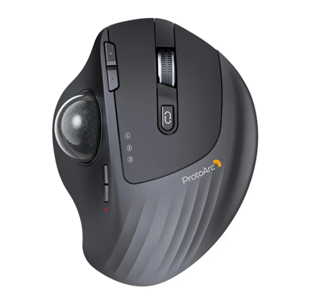 Модель ProtoArc EM01 совмещает преимущества вертикальной мыши и трекбола для достижения максимального комфорта. Уникальный шарнир позволяет изменять угол наклона устройства от 0° до 20°, подстраивая его под естественное положение кисти. Главная особенность заключается в том, что для перемещения курсора не нужно двигать всей рукой — управление осуществляется только большим пальцем через трекбол. Это делает модель незаменимой при работе в ограниченном пространстве: на заваленном вещами столе, в кресле или даже в дороге.