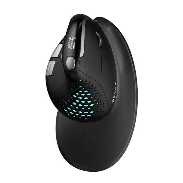 Данная модель представляет собой продвинутую версию вертикального манипулятора, ключевым отличием которой стал интегрированный OLED-экран. Дисплей позволяет в реальном времени отслеживать остаток заряда аккумулятора, активный тип соединения и текущее значение DPI. Корпус спроектирован с наклоном 55 градусов, что минимизирует напряжение в предплечье и делает устройство подходящим для обладателей средней и крупной ладони.