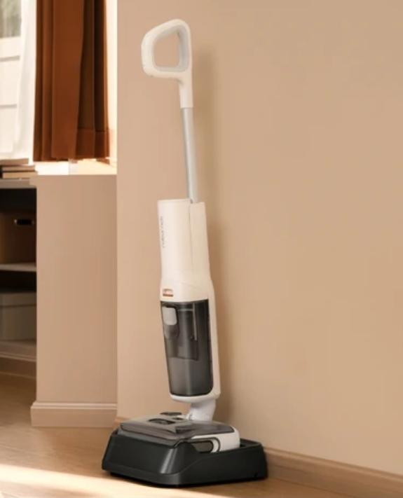 Поддерживает одновременную сухую и влажную чистку, хорошо справляется с пятнами на твёрдых полах. Удобная вертикальная парковка и компактность делают его практичным для ежедневного использования на кухне или в коридоре.