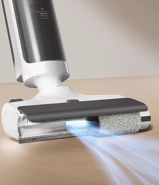 Далее идёт современный моющий вертикальный пылесос, сочетающий сухую и влажную уборку в одном проходе.