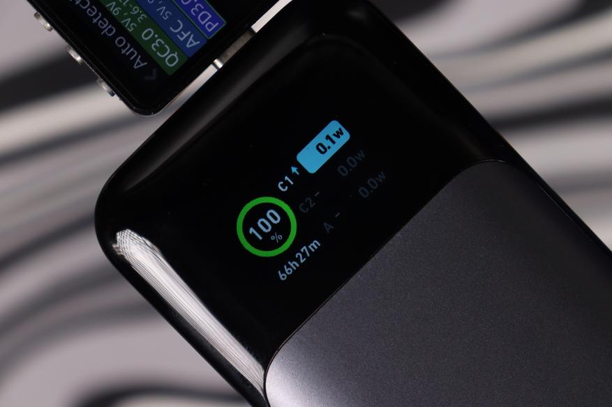 Надёжный середнячок с хорошим дисплеем и стабильной работой на умеренных нагрузках. Отлично справляется со смартфонами, планшетами и не самыми прожорливыми ноутбуками, показывает точные измерения и поддерживает все нужные протоколы быстрой зарядки. Но есть нюанс: при высоких нагрузках включается защита от перегрева, и время работы на пике заметно сокращается. Плюс заряжается сам аккумулятор всего на 65 Вт, что медленнее топовых моделей, зато потенциально продлевает жизнь батарее — если тебе не нужна постоянная работа на максимуме, это разумный и более доступный выбор. Обзор