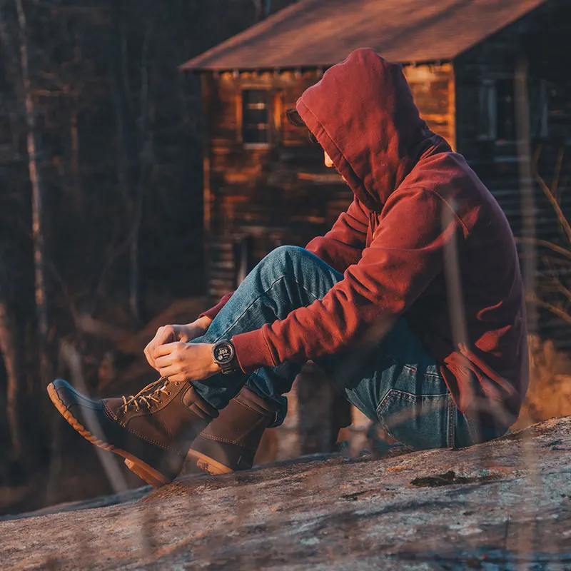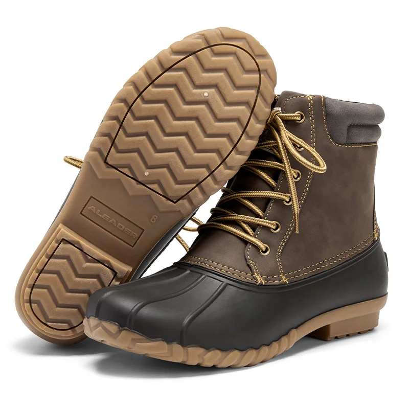 Aleader Duck Boot — это хороший выбор для осенних вылазок на природу. Их прорезиненная водонепроницаемая нижняя часть легко очищается от грязи обычной тряпкой, что облегчает уход за обувью. Верхняя часть может быть выполнена из кожи черного или коричневого оттенков.