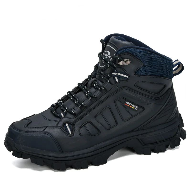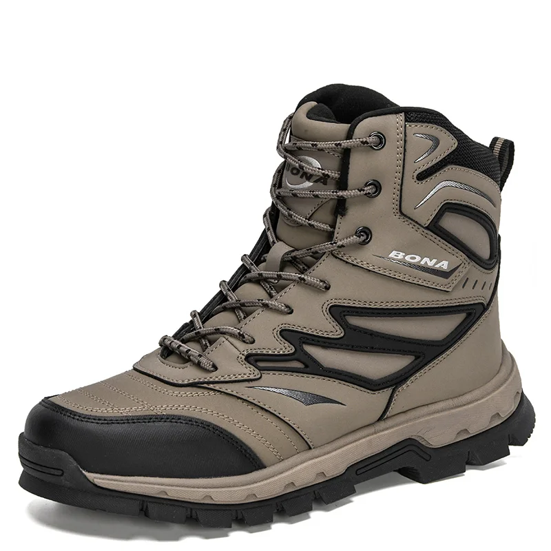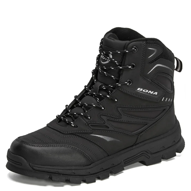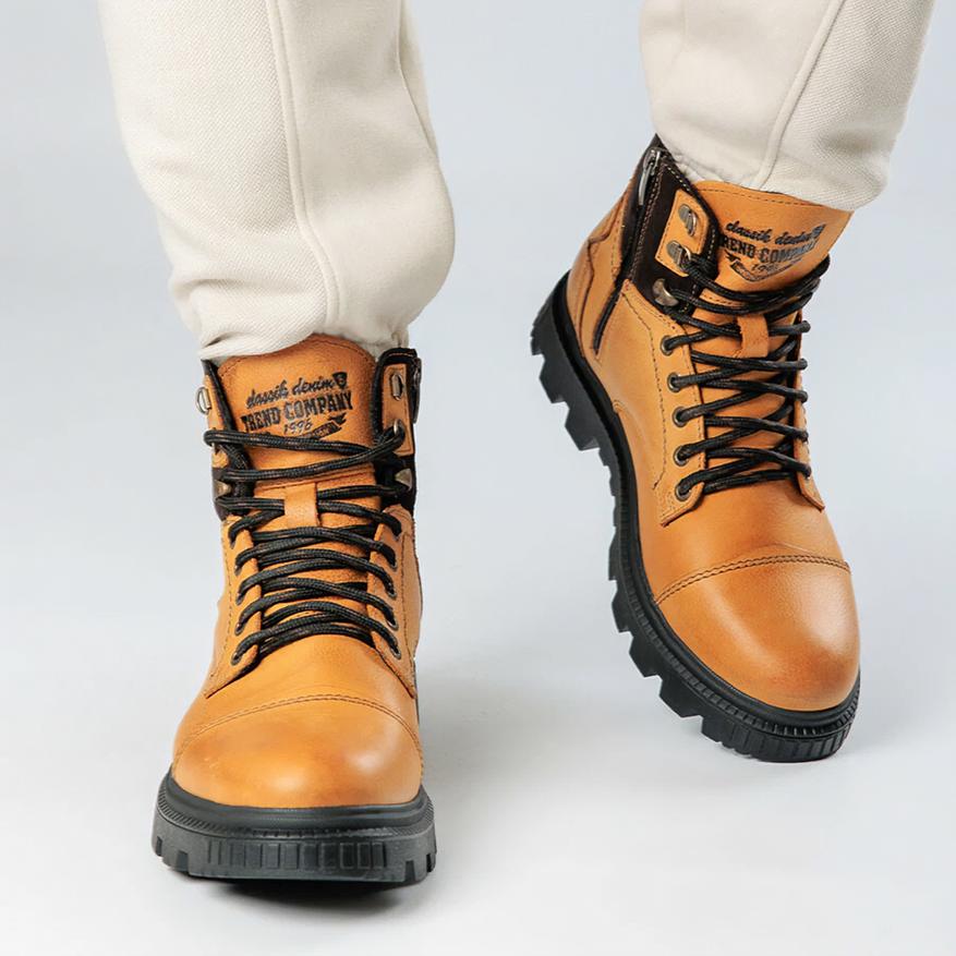 Альтернативный, менее популярный вариант высоких кожаных ботинок от Bona также доступен в размерах от 41 до 46. На выбор 4 цветовых решения, шнурки в цвет ботинок. Эта пара обуви обладает менее выраженным рельефом подошвы, скорее подходящим для ходьбы по дорогам с твердым покрытием. Подкладка умеренно «утепленная», выполнена из текстиля и искусственного меха.