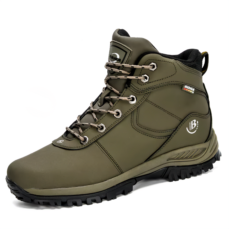 Популярные высокие кроссовки от Bona представлены в угольно-черном, темно-синем, хаки и сером исполнениях. Подкладка утеплена мехом, так же как и комплектные стельки от производителя. Верхняя часть изготовлена из спилок (разновидность натуральной кожи, получаемая после процесса расслоения).