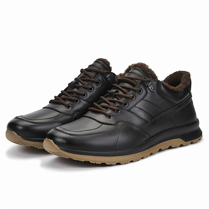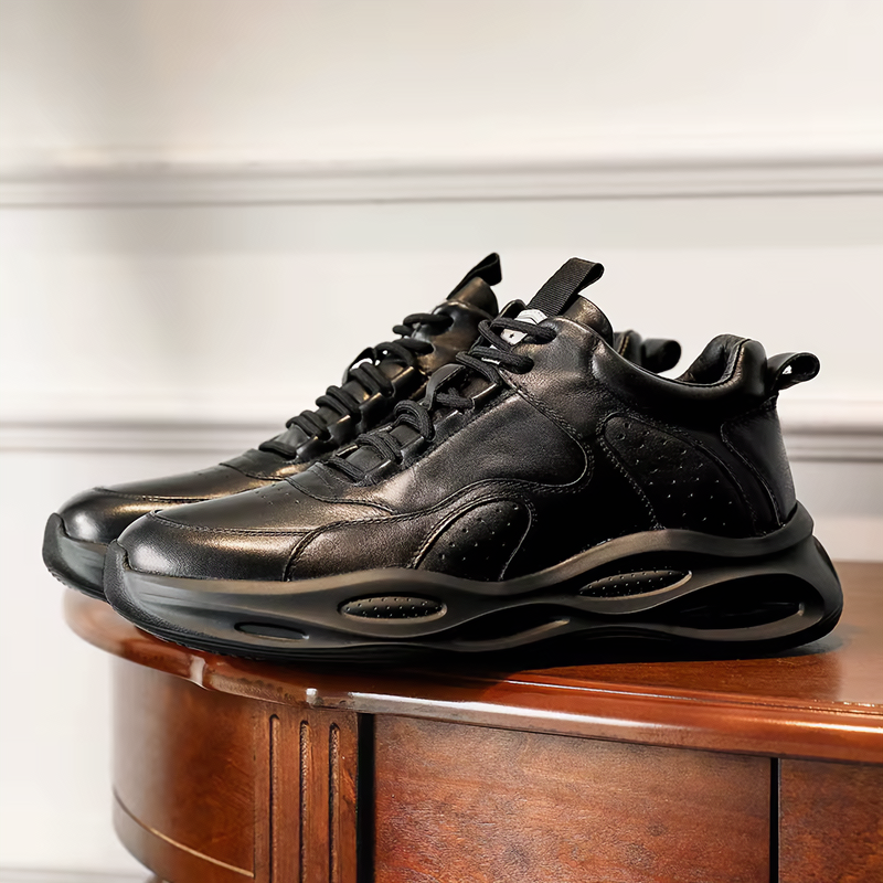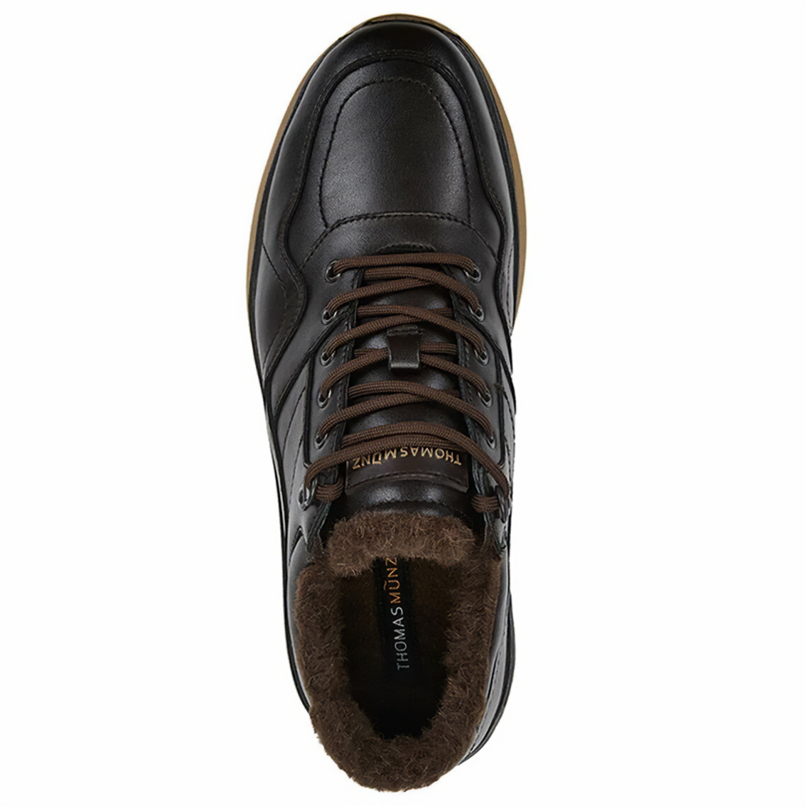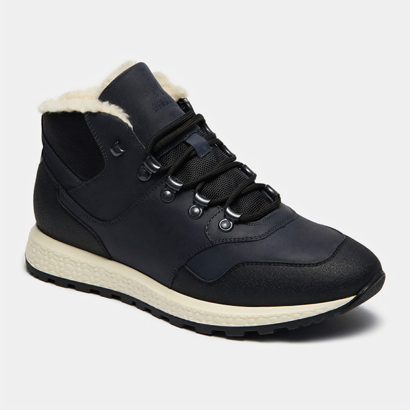 Верх выполнен из натуральной кожи, подкладка утеплена шерстью, толщина подошвы составляет от 20 мм в области носка до 35 мм в области задника. Лаконичный дизайн делает эти кроссовки универсальным выбором для любого стиля одежды.