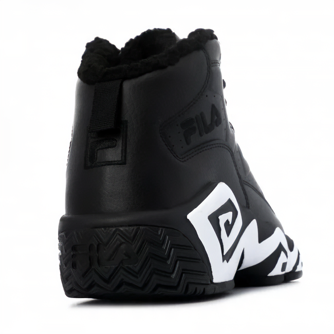 Носок и задник усилены широкими резиновыми накладками, что позволяет рассчитывать на длительный срок службы такой обуви. Fila MB Fur на момент публикации предлагались исключительно в черном цвете.
