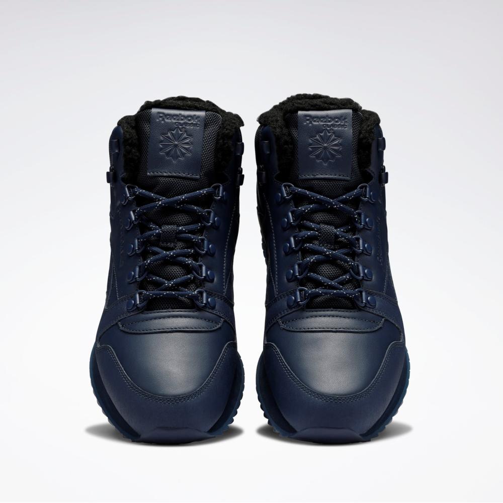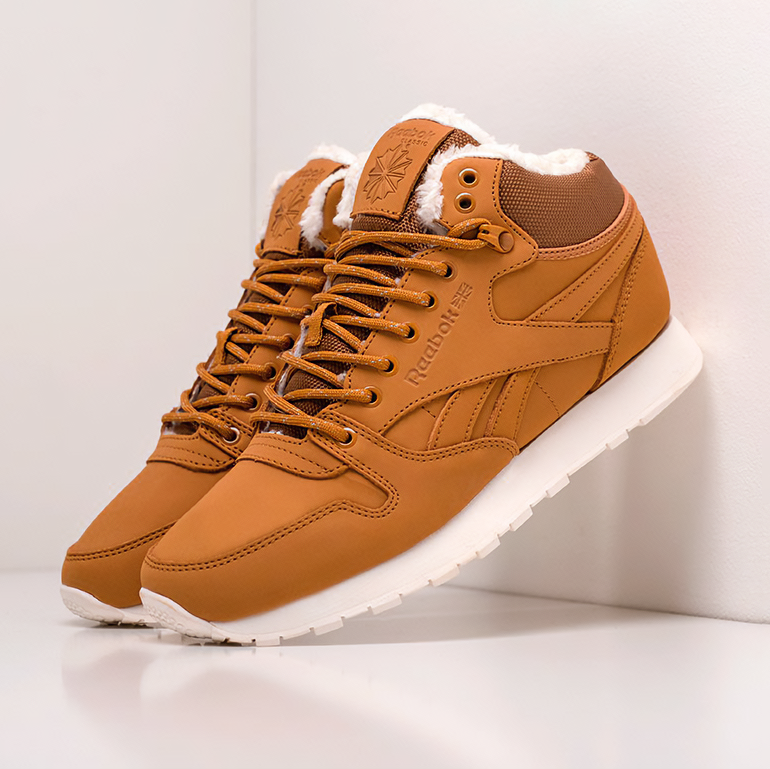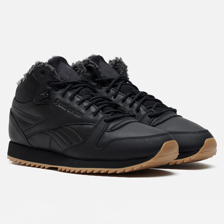В рамках линейки обуви Reebok Classic Leather можно найти утепленные искусственным мехом зимние варианты «Mid Ripple» и «Mid Ripple Sherpa». Данные кроссовки выпускаются далеко не первый год, и сейчас в продаже на маркетплейсах представлено большое количество цветовых решений, от строгих однотонных до более ярких «камуфляжных». Верх изготовлен из комбинации натуральной замши и текстиля в области воротника.