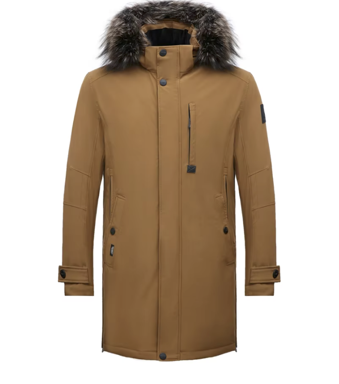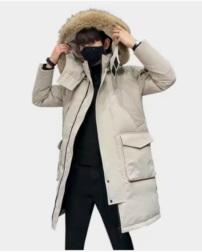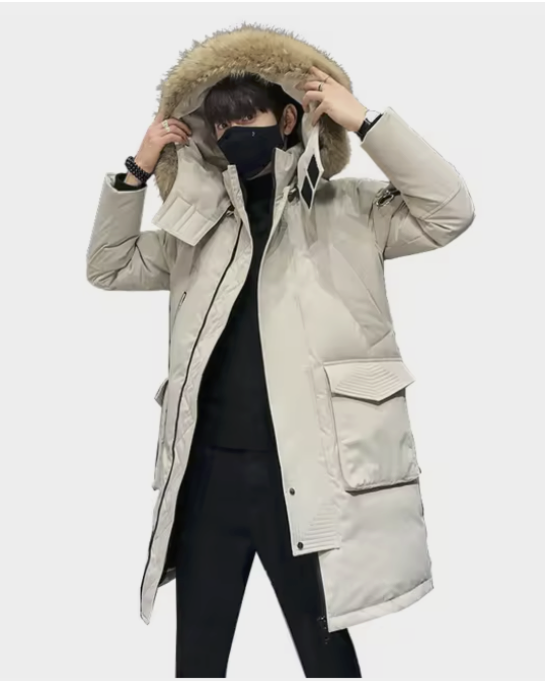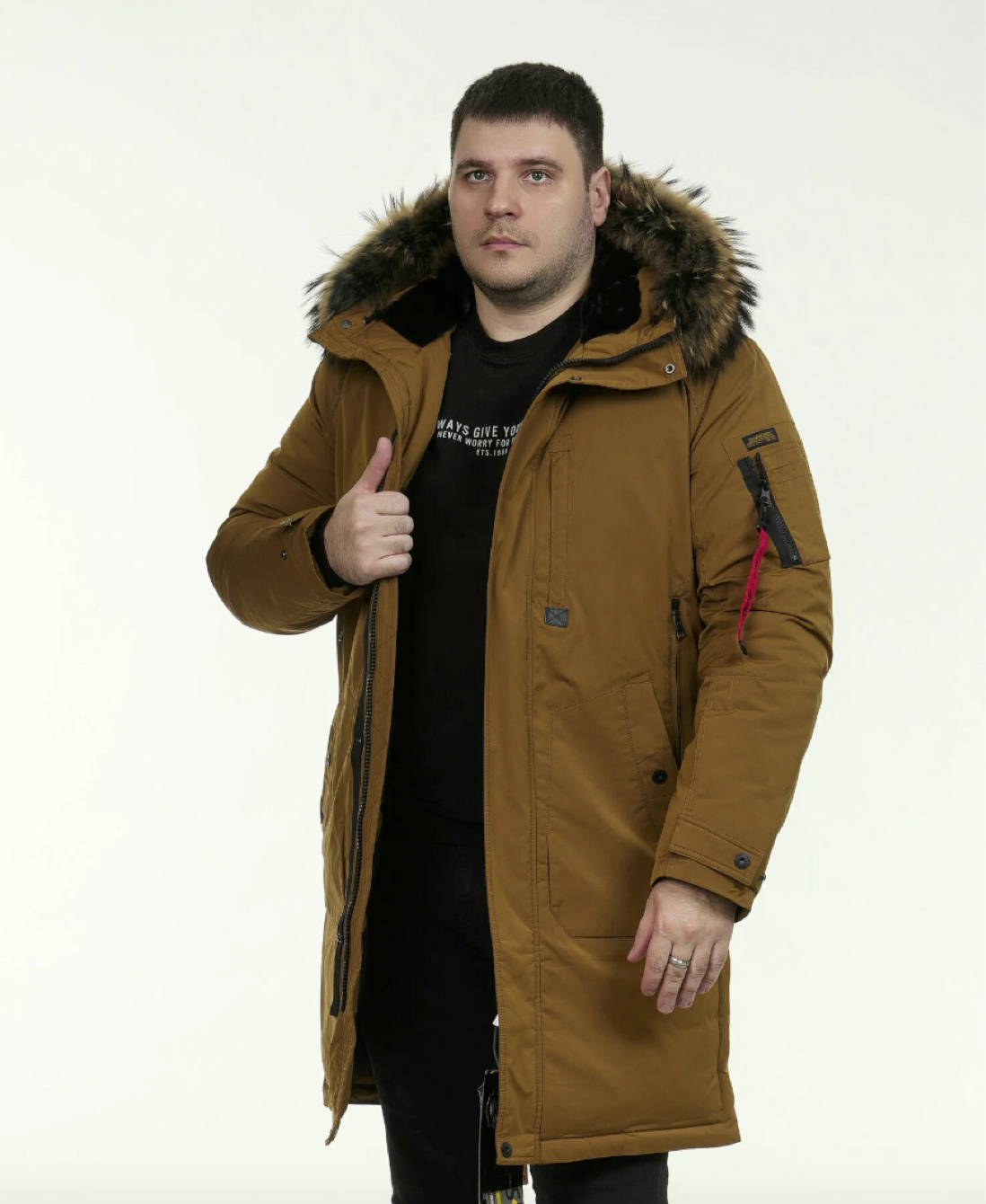 Анатомический капюшон с мягким мехом внутри — это не просто элемент дизайна, а ваша защита от любой непогоды. Капюшон можно отрегулировать по высоте, чтобы он идеально сидел, а съёмная опушка из меха енота добавляет стиль и уют, но при желании её можно легко снять. Центральная молния с двумя замками и ветрозащитная планка на магнитных кнопках — надежный щит от порывов ветра и холода.