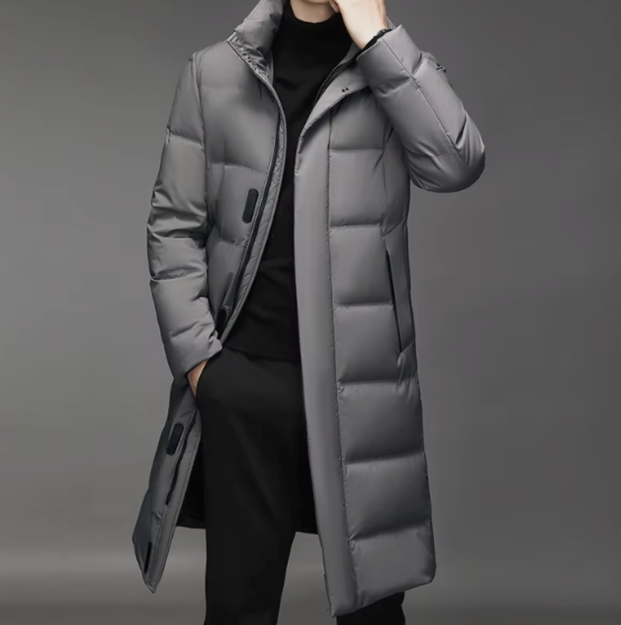 Воротник-стойка добавляет дополнительный слой защиты от ветра и создаёт элегантный и современный вид. Карманы на молниях расположены так, чтобы всё необходимое всегда было под рукой — будь то телефон, перчатки или ключи.