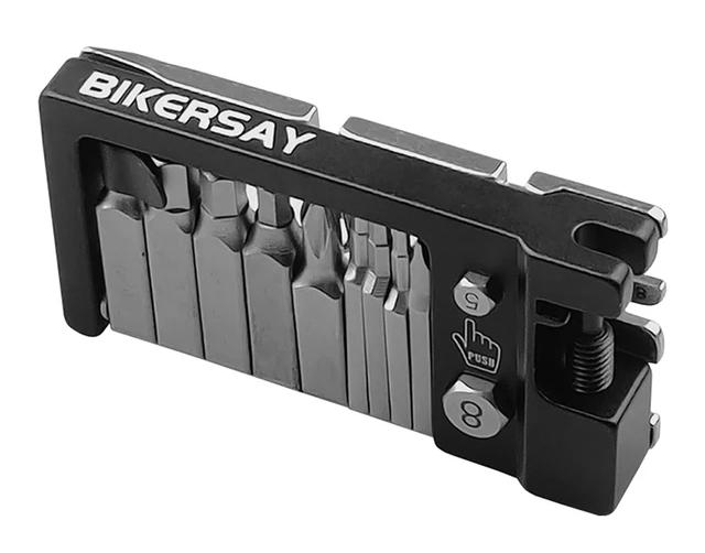 Легкий и компактный вариант, в котором есть только самые нужные ключи и выжимка звеньев цепи (с удобным откидным рычажком, он же мини монтажка для покрышек).