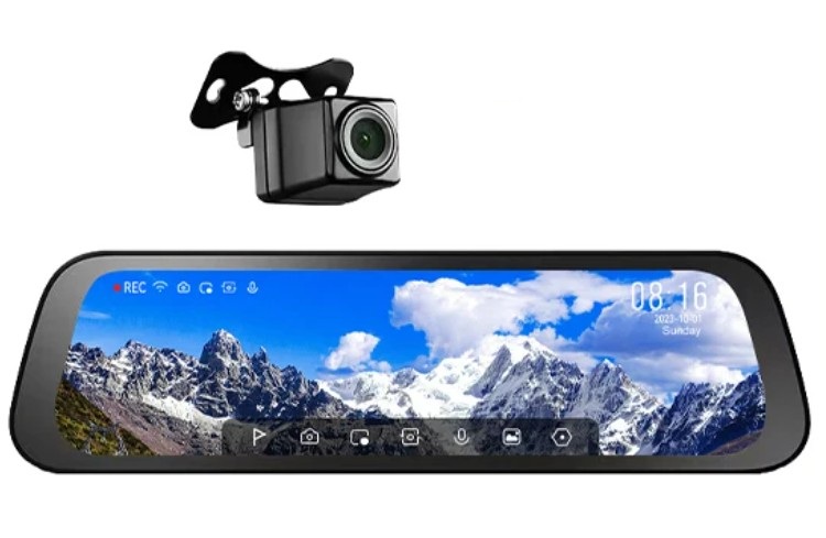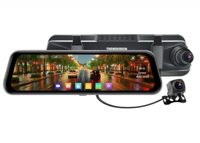 Более продвинутый вариант зеркала от TrendVision — это свежая модель MR-2K с двумя каналами записи (передний канал 2K Quad HD, плюс задний канал Full HD) со встроенным ассистентом парковки, а также с удобной настройкой через приложение. К слову, со смартфона можно будет получить доступ к записанным роликам в памяти устройства, а также обновить встроенное программное обеспечение. Отмечу светочувствительную матрицу GalaxyCore GC4653 и большой цветной IPS дисплей размером 10 дюймов, а также элементарную установку с помощью пары резиновых фиксаторов.