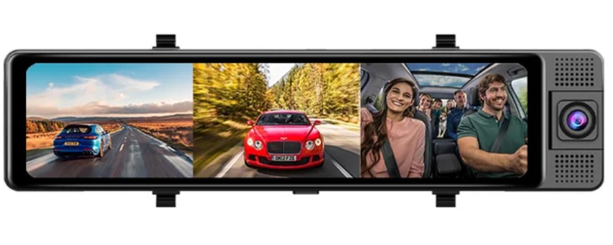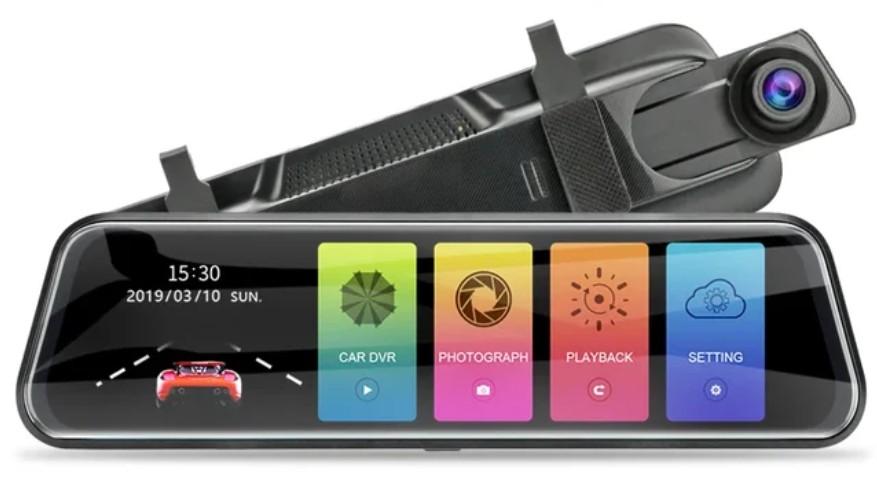 Бюджетное решение от китайского бренда Jansite — комбинированное зеркало с FHD регистратором и задней камерой. Дополнительную камеру можно как отдельно купить, так и в комплекте — внимательно смотрим при оформлении описание лотов. Также в комплекте можно выбрать комплект для установки скрытой проводки (Power Box). Это достаточно простая модель с десятидюймовым сенсорным цветным экраном, но вполне доступный вариант просто попробовать такой форма или в качестве замены штатного салонного зеркала.
