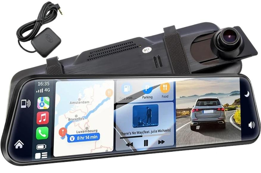 Продвинутый вариант с поддержкой CarPlay и AndroidAuto — умное зеркало от Bluavido. Модель разработана на базе Android 8.1 и оснащается 2/32 Гб встроенной памяти. Есть функции ASAD (предупреждения), контроля скорости, парковочного ассистента, а также ряд мультимедийных функций — трансляция музыки, трансляция экрана смартфона, а также функция беспроводной голосовой связи. Отмечу удаленный мониторинг через приложение для смартфона (Car Assist App). Камера заднего вида поставляется в комплекте.
