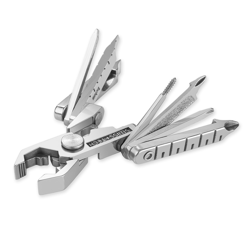 Компактное решение для тех, кому важна мобильность с минимальным ущербом для функциональности. Всего 68 грамм веса и 10 инструментов в одном корпусе — от плоскогубцев и ножниц до скрепки для извлечения SIM-карты. Рукоятки мультитула выполнены из алюминия, а инструменты — из нержавеющей стали 30Cr13.