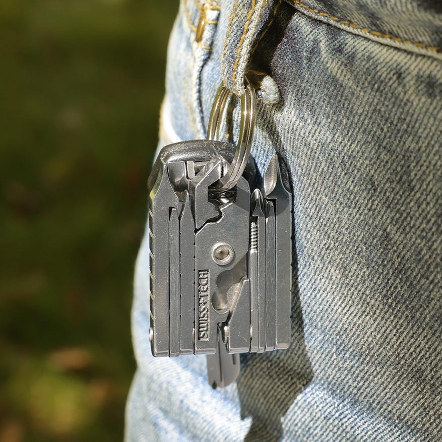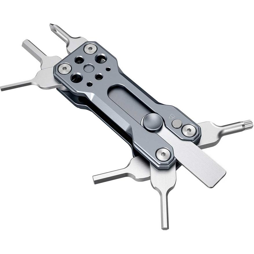 Премиальное решение из титанового сплава TC4 весом всего 46 грамм при размерах 9 x 2.4 x 0.8 см. Несмотря на компактность, включает плоскую отвертку, стеклобой, миниатюрный «коготь» для вскрытия посылок, монтировку, транспортир с линейкой и даже специализированный ключ для кислородных баллонов.