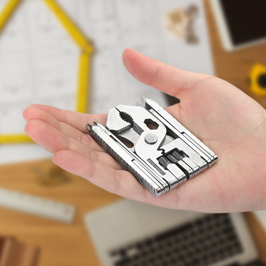 Очень популярное на Алиэкспресс и наиболее доступное решение в подборке. Плоский мультитул в формате кредитной карты удобно носить в кошельке, не занимая дополнительного места в карманах. Мультитул объединяет 46 различных функций в ультракомпактном корпусе. Включает линейки с сантиметровой и дюймовой разметками, открывалку, гаечные ключи, отвертки и множество специализированных инструментов.