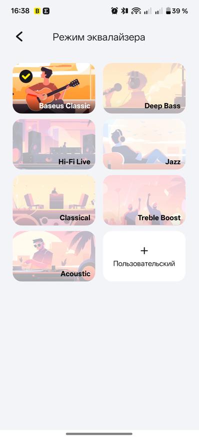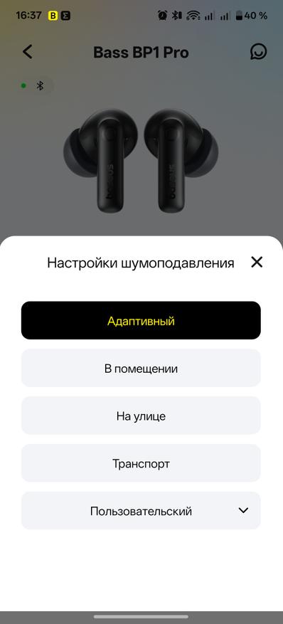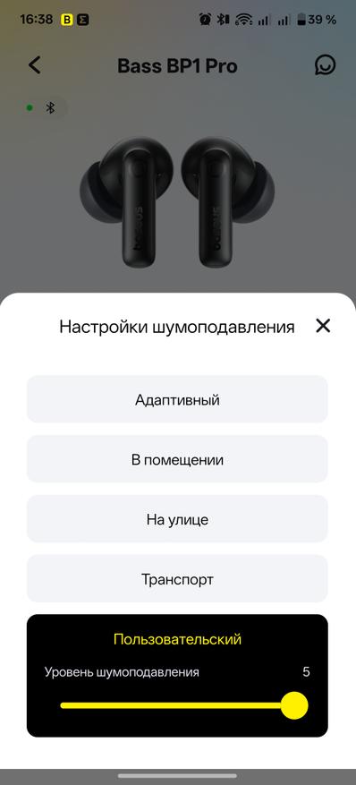 Что порадовало — так это хорошее шумоподавление и довольно гибкая адаптация к внешним звукам. Они реально отсеивают внешние шумы, оставляя вас наедине с вашими любимыми треками. Для корректной настройки добавим наушники в приложение Baseus. Стоит отметить, наушники локализованы и нужно выбирать регион Европа для добавления устройства. В приложении появляется информация о статусе зарядки и наушников, и кейса, можно выбрать один из пяти вариантов шумоподавления. Не забываем активировать режим передачи высококачественного звука, тогда наушники начинают работать с кодеком LDAC. Можно обновлять программное обеспечение гаджета «по-воздуху». Для того, чтобы настроить звучание под себя можно выбрать один из нескольких предустановленных вариантов эквалайзера или настроить свой пользовательский.