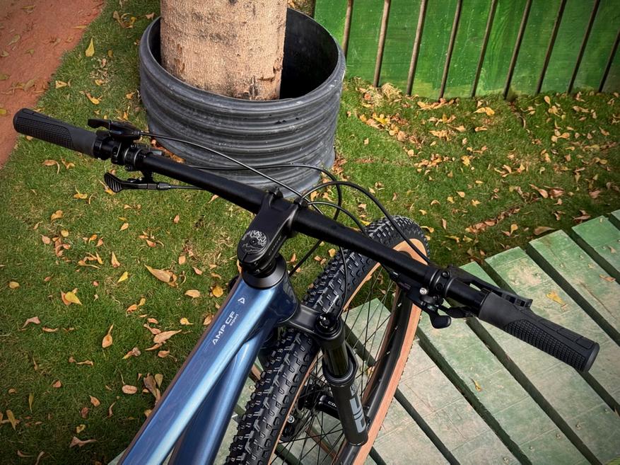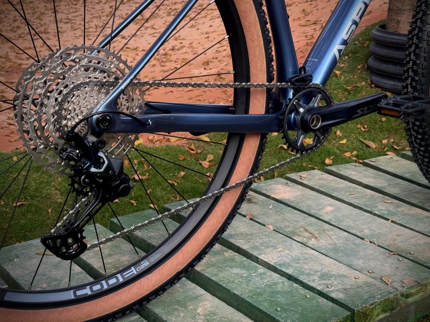 Aspect AMP CF EXPERT обошелся без «альтернативных китайских комплектующих», аппарат собран на привычных для своего высокого класса компонентах. За амортизацию отвечает воздушно-масляная вилка RockShox SID с ходом 110 мм и 35 мм «ногами», присутствует регулировка компрессии и отскока. Трансмиссия — 12 скоростей, переключатель Shimano SLX (на петухе Sram UDH) с манеткой Shimano Deore и кассетой Shimano Deore с максимально широким диапазоном 10-51Т. Вилсет предсказуемо бустовый, установлены покрышки Vittoria Mezcal 29х2.4″ (TR) с компаундом Race Formulation Graphene + Silica.