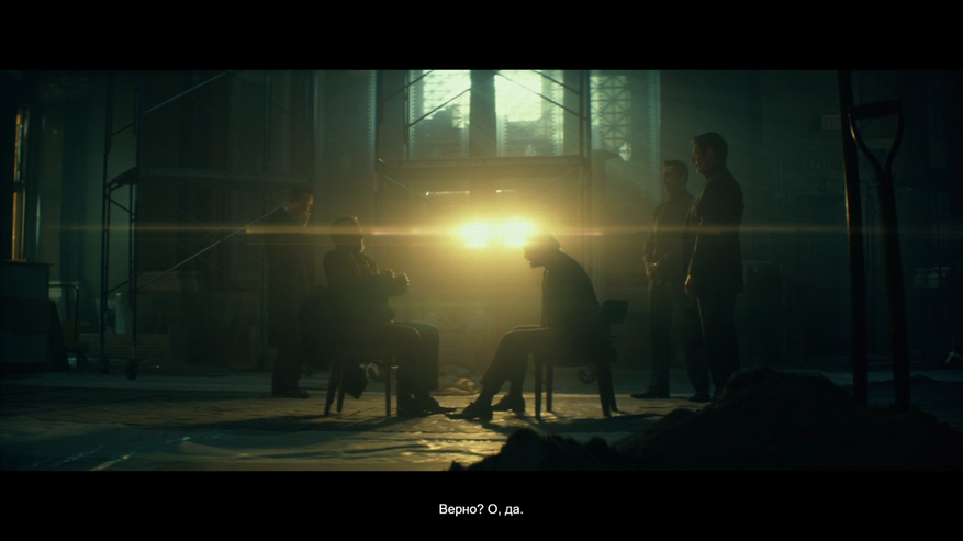 В этой сцене у нас, по сути, 3 взгляда на ситуацию — от лица Вигго, от лица Джона и от лица Йосифа. Вигго смирился с ситуацией и просто заглушает боль сигарой. Джон методично идет к своей цели. Причем первая треть сцены воспринимается от лица Джона и Вигго, а потом идет переход перспективы от лица Йосифа. Происходит это в момент, когда Уик убивает из снайперской винтовки охранника. Музыкальная тема останавливается, а сам Тарасов тяжело вздыхает и испытает чувства удивления и страха. И только восклицание другого подручного «Ложись, ложись!» возвращает Йосифа и музыку в этот мир.