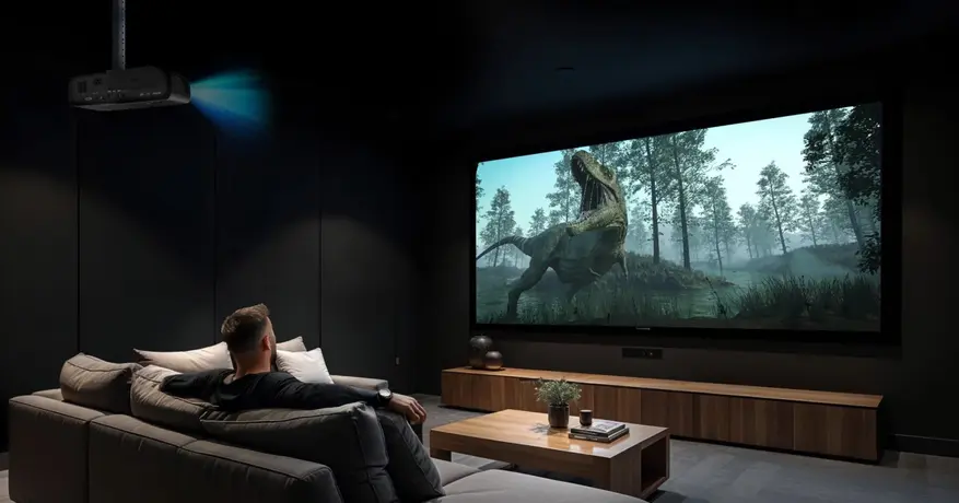 Проектор оборудован встроенным динамиком мощностью 5 Вт. Для подключения внешних аудиосистем предусмотрены разъемы HDMI eARC и многоканальный S/PDIF.