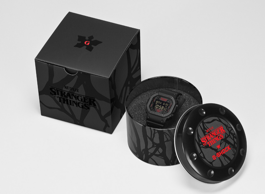 Компания Casio выпустила новую лимитированную версию часов G-Shock DW-5600STT-1JR, созданную в рамках коллаборации с сериалом «Очень странные дела». Модель посвящена «Перевернутому миру» — мрачной альтернативной реальности сериала, финальный сезон которого выходит в этом ноябре.