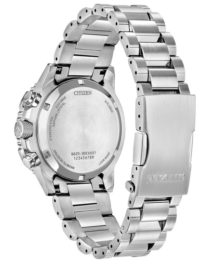 Часы построены на базе фирменного механизма B620 Eco-Drive, работающего от энергии света. При полной зарядке калибр обеспечивает автономную работу на протяжении 270 дней без дополнительной подзарядки. Хронографическая функция позволяет фиксировать отрезки времени продолжительностью до 60 минут с точностью измерения одна пятая секунды.