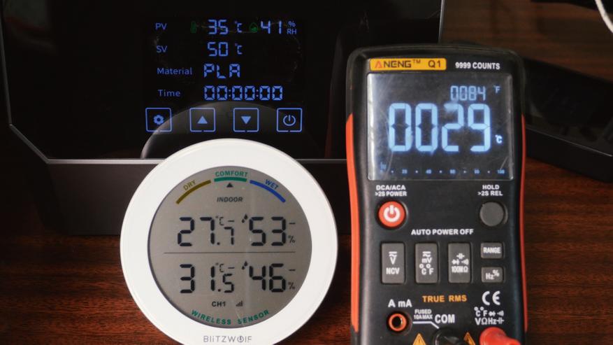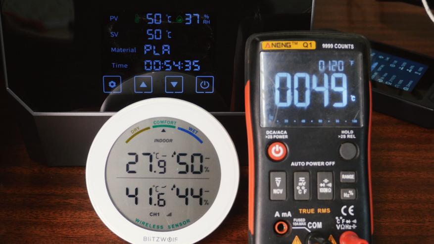 С влажностью та же беда, модуль гигрометра догнал показания сушилки только за час работы, а через несколько даже слегка обогнал. Видимо в прошивке прописаны значения, при которых пользователь должен быть доволен.