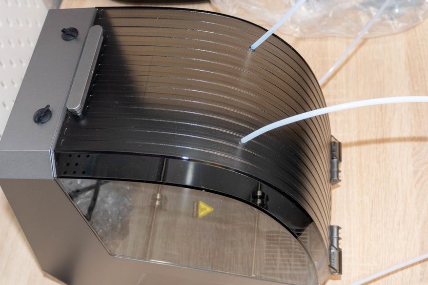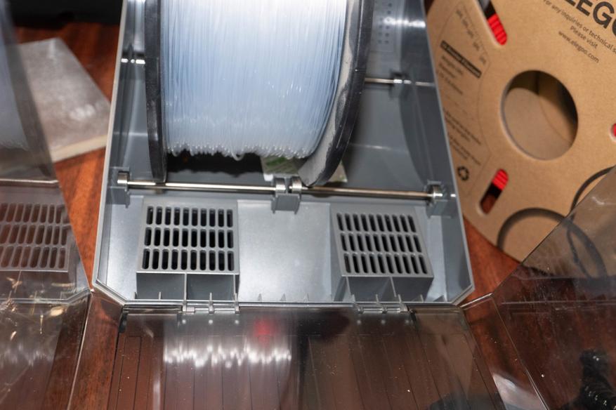 Но на практике стало понятно, что в первом случае филамент будет слишком сильно загибать, а вот во втором ничего не мешает прутку. Видимо отверстия без заглушек служат для вентиляции и вытеснения влажного воздуха во время работы.