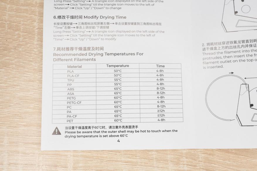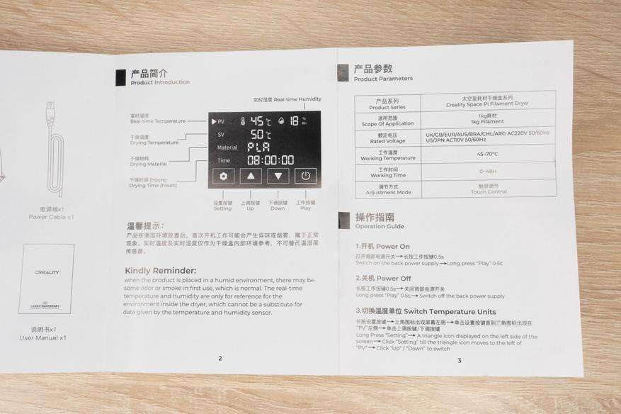 Внутри была только сушилка, трубка для более удобной подачи филамента к приёмнику принтера, провод питания и небольшая, но подробная инструкция.