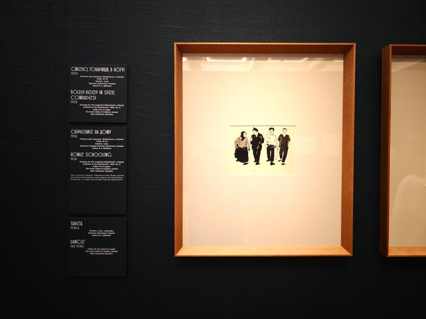 Особое место на выставке отведено графике. И это не просто случайность. Во-первых, Дейнека хороший график, и мы убедились в этом однажды, просматривая его рисунки на тему Войны. Во-вторых, сам художник замечал, что для передачи современной ему жизни — графика является наилучшей техникой (точная цитата приведена в ГТГ).