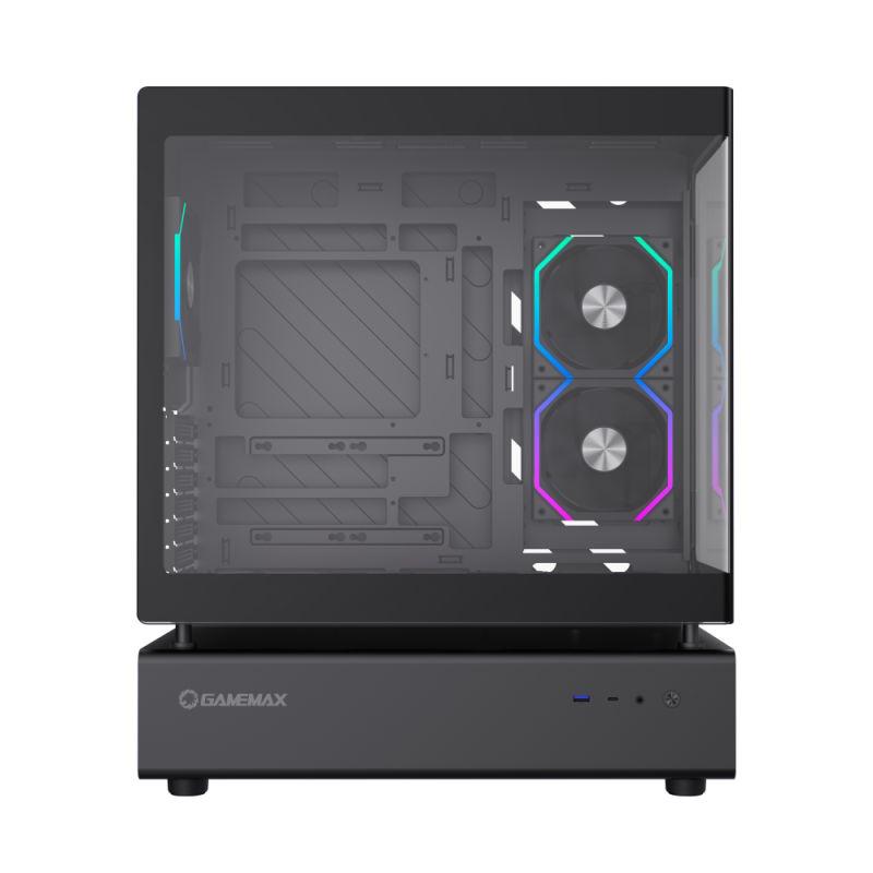 GAMEMAX N80 — инновационный двухкамерный корпус для ПК с панорамным дизайном. Конструкция с раздельным охлаждением отсеков обеспечивает улучшенную вентиляцию, а изогнутое стекло создаёт эффектный обзор системы на 270°.