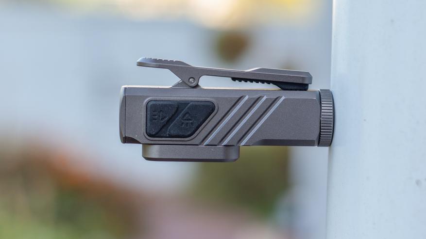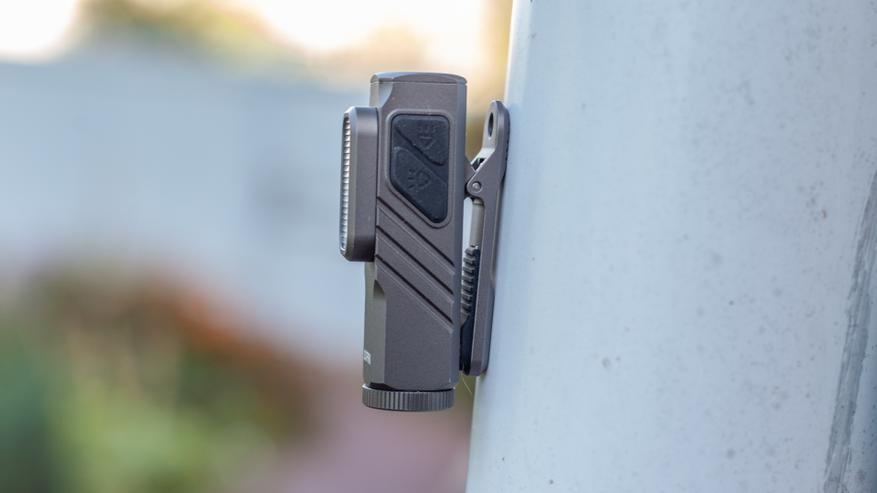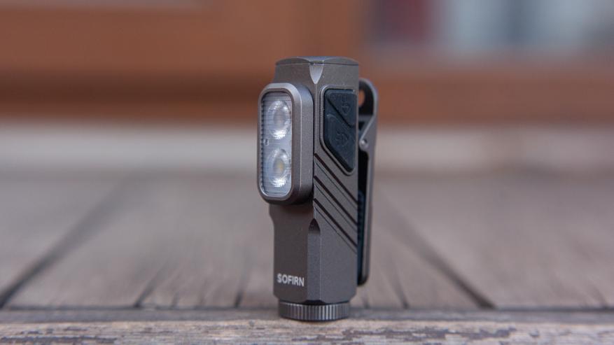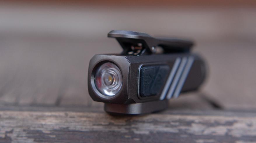 Пружина в клипсе тугая, держится клипса весьма и весьма надёжно. Насколько я помню, в промо-материалах Sofirn тулят фонарик еще и на козырёк кепки в качестве налобника и эта маркетинговая дичь очевидна каждому, кто на самом деле пользовался фонариками. Убогая нелепица, кочующая по рекламных материалам схожих по формату «прищепок». Вы же понимаете, что ближний свет тут делает только одно — слепит, ведь он направлен прямо в глаза пользователю…