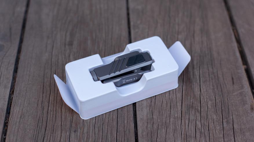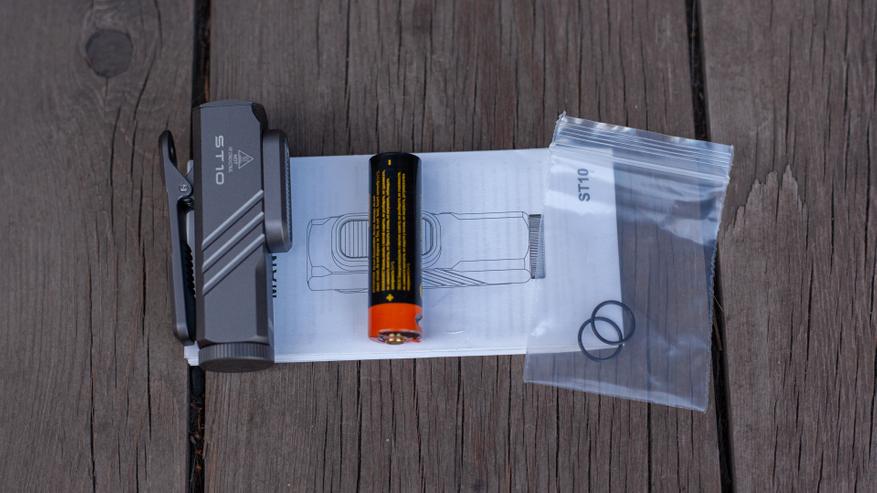 Купивший этот фонарик вытащит из коробки белую пластиковую подложку, в которой лежит сам герой обзора, небольшой темляк, кабель зарядки и руководство. Комплектный 14500 аккумулятор, разумеется, находится в самом Sofirn ST10.