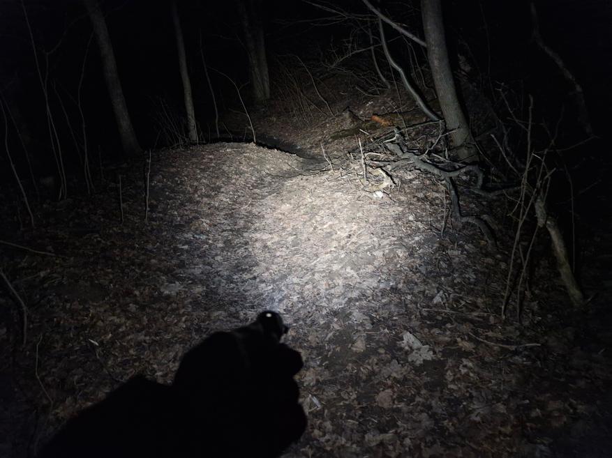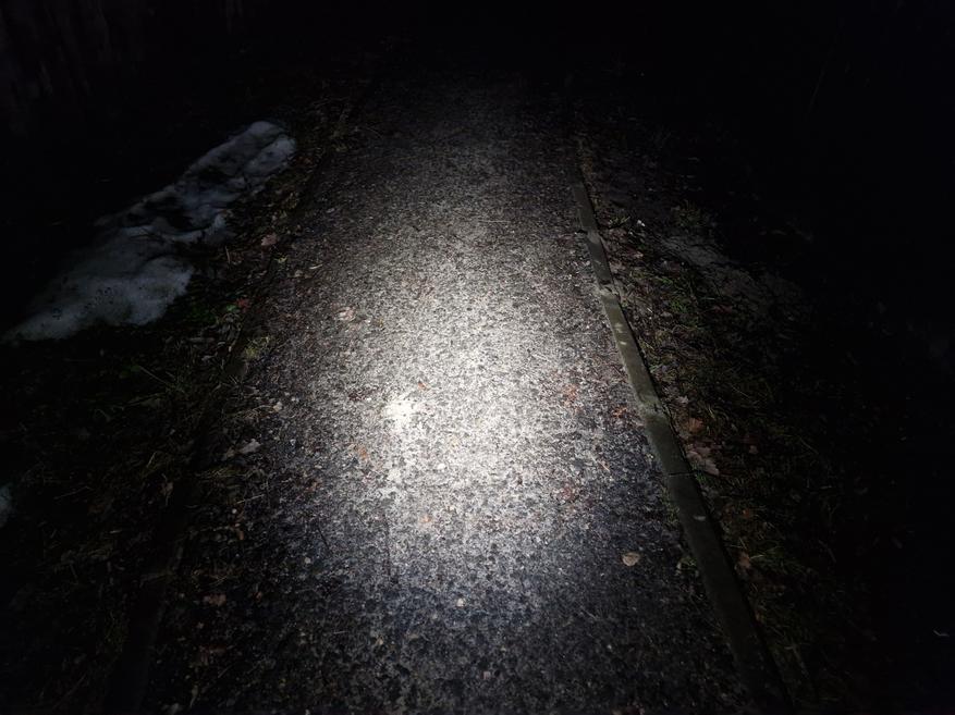 Чтобы идти в темноте и турборежима зажигать не обязательно, в максимуме яркости дорогу видно на 10-20 метров со всеми деталями. Дальности тут ровно для того, чтобы заранее замечать препятствия, ориентироваться на грязной тропинке или на неосвещённой дороге ночью. Минимальная яркость (10 люмен) слабовата для уличного использования — больше подходит для локальных задач дома.