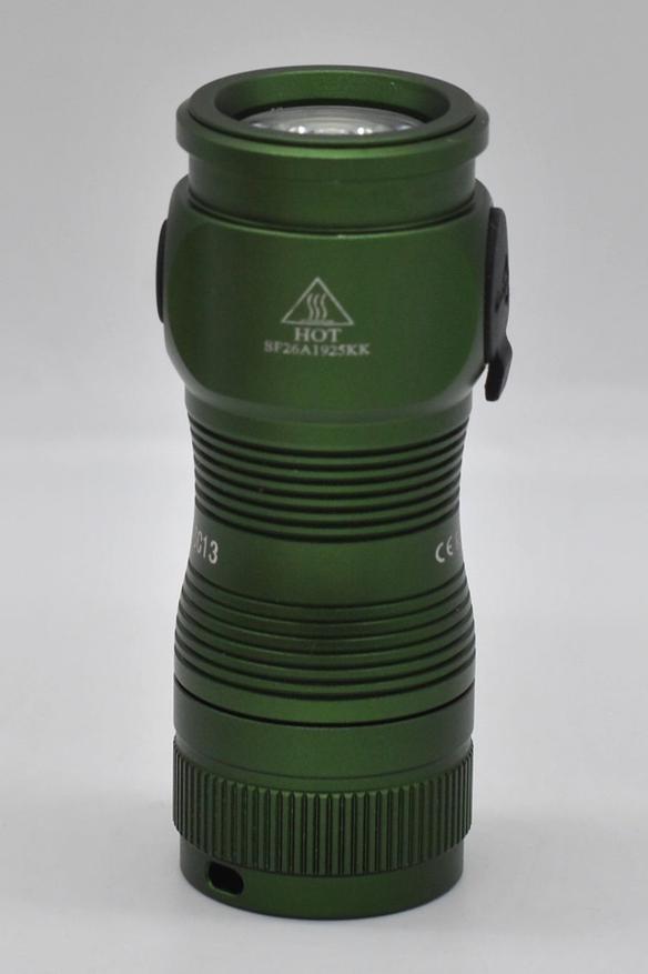 У этого фонарика есть несколько вариатов светодиодов, а именно Hi-Cri Nichia 519A 5000K или чуть более яркий Luminus SST40 6000K, два варианта цвета корпуса (черный/зеленый), и вариант с более «навороченным» драйвером Anduril (с литерой «А» в названии). У меня версия с обычным драйвером, светодиодом 519A и зеленым корпусом («не роняй меня в траву»).