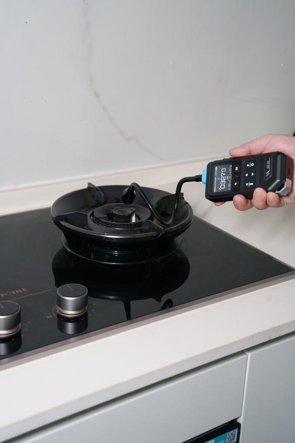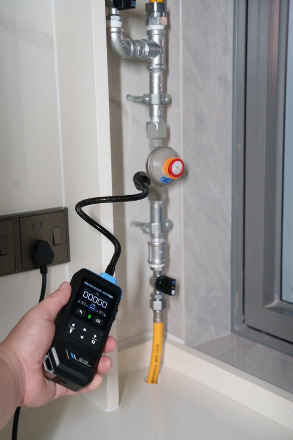 Как понятно из заголовка и описания, данный детектор служит для обнаружения утечки горючих газов, так что им можно проверять герметичность соединения газовых труб и клапанов плит, в том числе походных. Для примера на третьем фото был ненадолго открыта подача в плитке, а на четвертом реакция на газ из зажигалки.