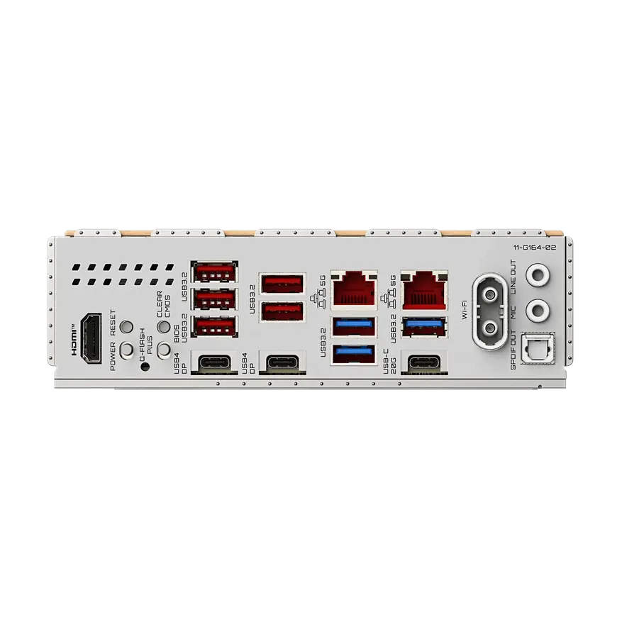 Среди интерфейсов — два 5-гигабитных Ethernet-порта, встроенный Wi-Fi 7, два USB4 Type-C с поддержкой DP-Alt Mode, восемь портов USB 3.2 Type-A, один HDMI и один USB-C 20 Гбит/с.