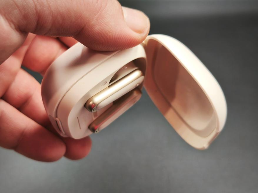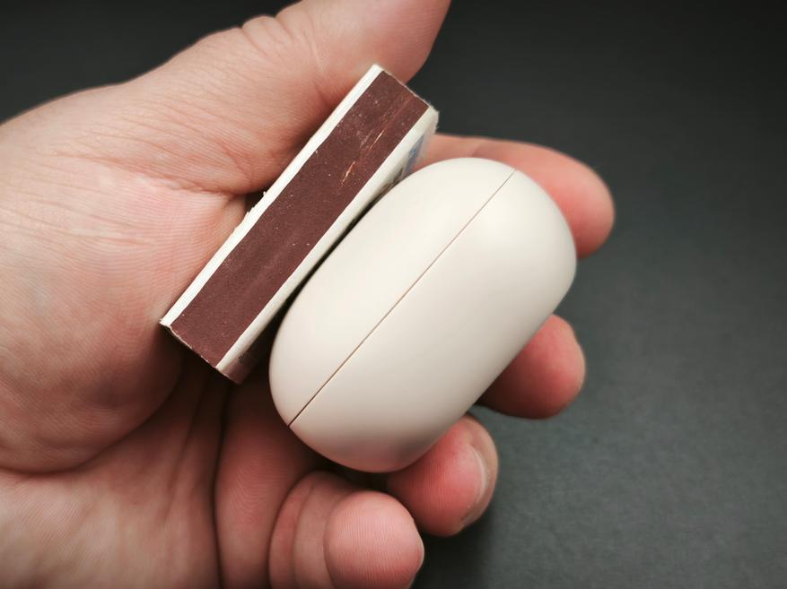 Сами наушники, на мой взгляд, выглядят эстетично, просто и без излишеств. На условно внешней стороне наушника имеется глянцевая поверхность, под которой размещена сенсорная кнопка, в области кнопки имеется логотип компании производителя. С внутренней стороны можно наблюдать два магнитных контакта, служащих для зарядки. Также хочется отметить форму наушников в той области, где они вставляются в ушную раковину. Здесь они немного вытянутые, но не чрезмерно, что в моем случае играет положительную роль в фиксации наушника в ухе. Однако, этот момент очень индивидуальный. Я знаю людей, которые вообще не могут в силу формы своего уха ходить с внутриканальными наушниками, они у них просто выпадают. Добавлю, что в каждом наушнике имеется три микрофона, к которым мы обязательно вернемся в соответствующем разделе ниже: мне точно есть что сказать об их работе. Наверное, еще стоит отметить, что наушники чрезвычайно надежно фиксируются в кейсе, и даже при его падении они часто остаются внутри. Ну и сама крышка кейса ни разу произвольно не открылась, так как фиксируется при помощи своего магнита.