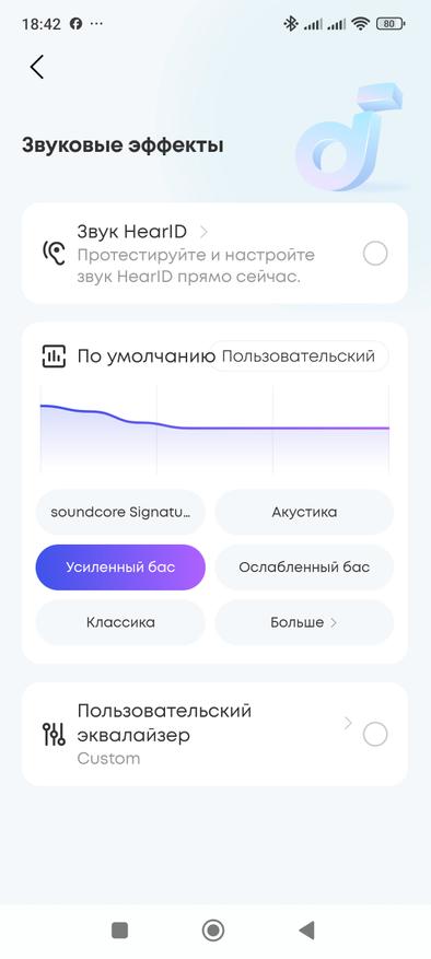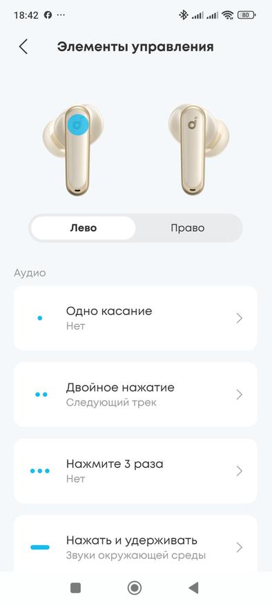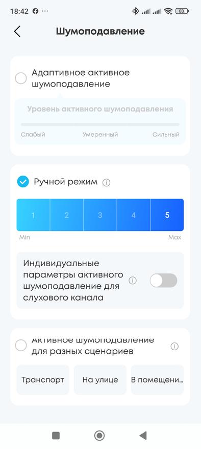 Для тщательной настройки наушников компания предлагает воспользоваться своим фирменным приложением, скачать его можно считав QR-код из инструкции. Оно имеет много различных функций и режимов. К примеру, можно подобрать режим шумоподавления, выбрать адаптивный или задать параметр в ручную, также можно выбрать прозрачный режим или выбрать шумодав с учетом вашей ушной раковины. Также можно дополнительно выбрать режим «Защита от шума ветра», которая действительно помогает на сильном ветру. Помимо этого есть возможность подобрать настройку эквалайзера исходя из ваших предпочтений в музыке.