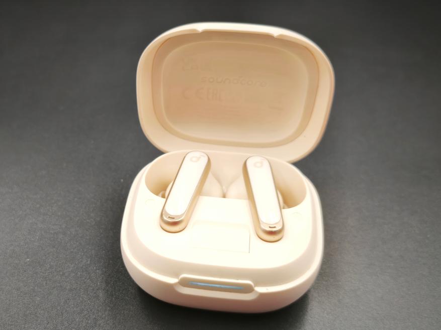 На лицевой стороне, в месте открывания крышки кейса, установлен довольно большой светодиод, который отображает режим подключения и поиска устройств, а также отображает красным светом низкий уровень заряда кейса. Разумеется, при обновлении наушников или при их сбросе (Reset), светодиод также срабатывает в определенном порядке мерцания.