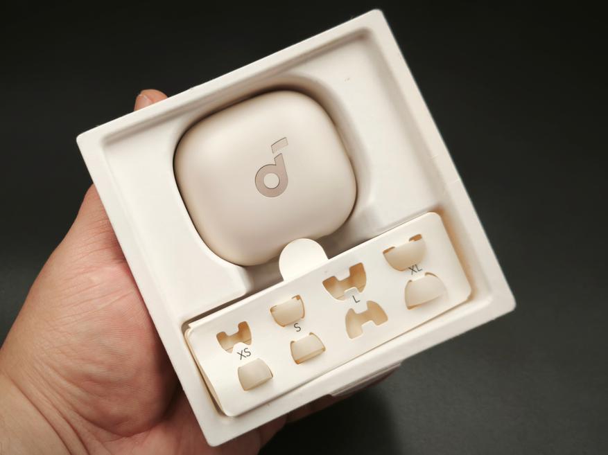 Поставляются наушники в небольшой коробке из тонкого картона. Однако, внутри есть специальная вставка, в которой вся комплектация надежно защищена при транспортировке или хранении. В комплект поставки входят сами наушники, комплект амбушюр из четырех разных размеров (+1 непосредственно на наушниках), зарядный кабель и инструкция. Также в комплекте была какая-то рекламная брошюра, но я ее потерял.