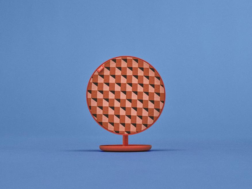 Младшая модель имеет диаметр восемь дюймов и работает от встроенного аккумулятора, обеспечивающего до 25 часов непрерывного воспроизведения. Устройство оснащено единственным динамиком диаметром 2,5 дюйма, способным выдавать звуковое давление 80,5 децибел. Корпус выполнен в оранжевом цвете с рисунком, напоминающим шахматную доску. Конструкция предусматривает настенное крепление или размещение на горизонтальной поверхности с помощью входящей в комплект подставки.