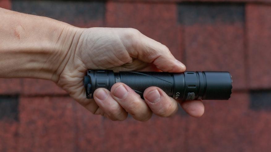 Управляется фонарик связкой из двух хвостокнопок и заточен под обратный хват — классика для тактических фонариков, она даёт возможность как моментально включить постоянный свет, так и стробоскоп. Если в управлении предусмотрели эту возможность, разумеется, всякое ведь бывает. И это мы проверим ниже.