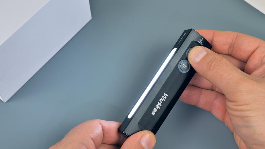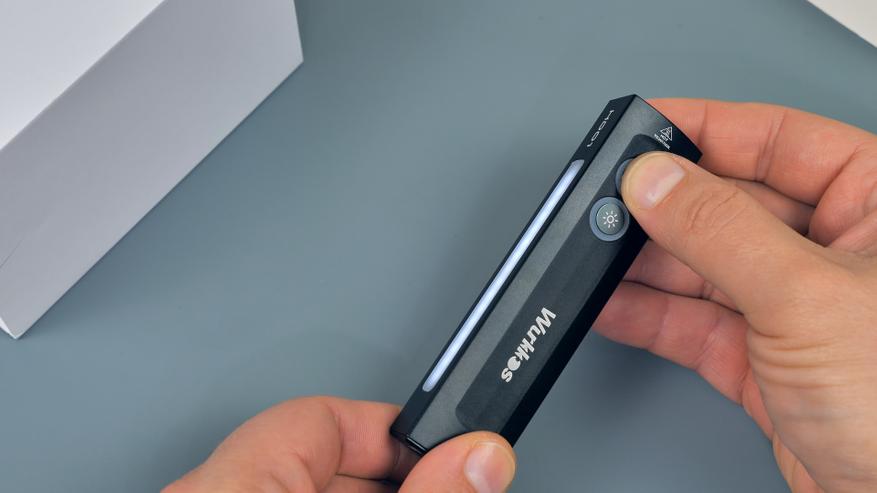 Фонарь имеет встроенный мощный магнит для крепления на любую металлическую поверхность, что в сочетании с боковой подсветкой существенно расширяет варианты его использования. Кнопки управления оснащены светодиодным индикатором с функцией отображения уровня заряда встроенного аккумулятора, а также маячком, что облегчает его поиск в темноте.