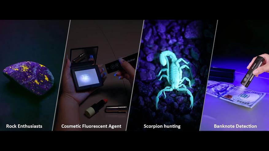С помощью ультрафиолетового света можно, например, проверить, настоящая ли купюра: под УФ-светом на ней светятся специальные защитные знаки. Можно увидеть то, что не разглядеть при обычном свете, — например, следы от лап или шерсти домашних питомцев. Автомеханики пользуются УФ-фонариками, чтобы найти подтёки масла или других технических жидкостей при ремонте авто.