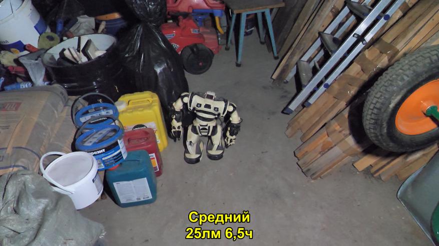 Средний — световой поток 25 лм, время работы — до 6,5 часов.