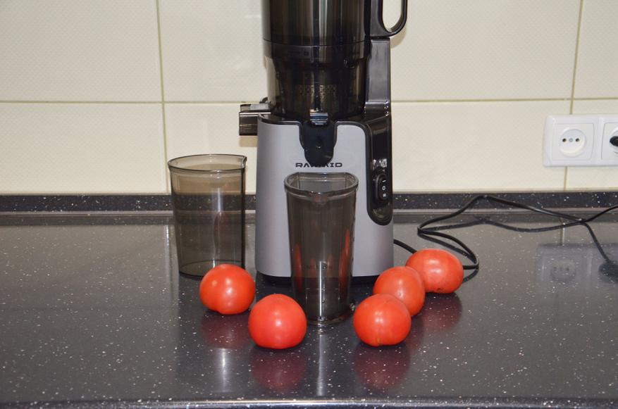 Относительно томатов, надо признать, что этот овощ довольно не однозначный. Например, ручная соковыжималка типа Струмок используется для получения сока для его заготовки. В этом случае предпочтительнее мягкие плоды, сока нужно и будет много. RMJ-03 предпочитает плоды не такие мягкие и лучше всего, если это будут черри. Они более плотные и их соковыжималка воспринимает лучше. Из мягких же жмых получается довольно влажный, но сок гуще.